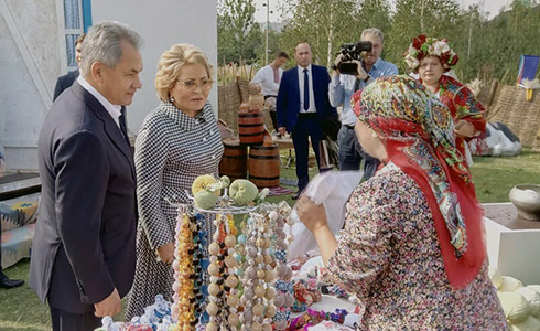 Валентина Матвиенко и Сергей Шойгу посетили кубанский курень в московском парке «Зарядье»